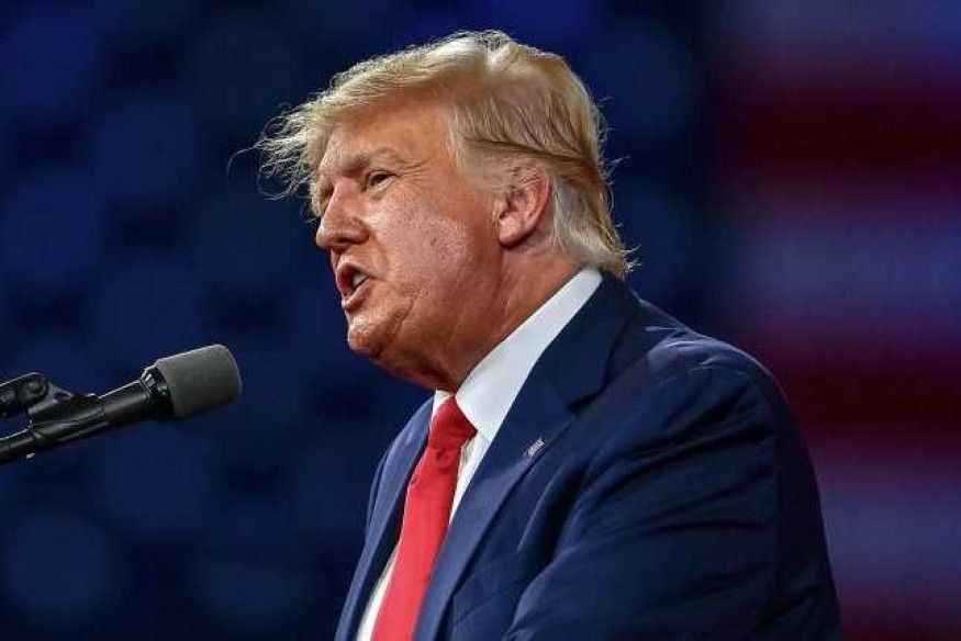 De pie solemnemente con una mano en el pecho, Trump abrió su manifestación con una canción titulada "Justicia para todos", cantada por un grupo de manifestantes por su participación en el ataque al Congreso del 6 de enero de 2021.