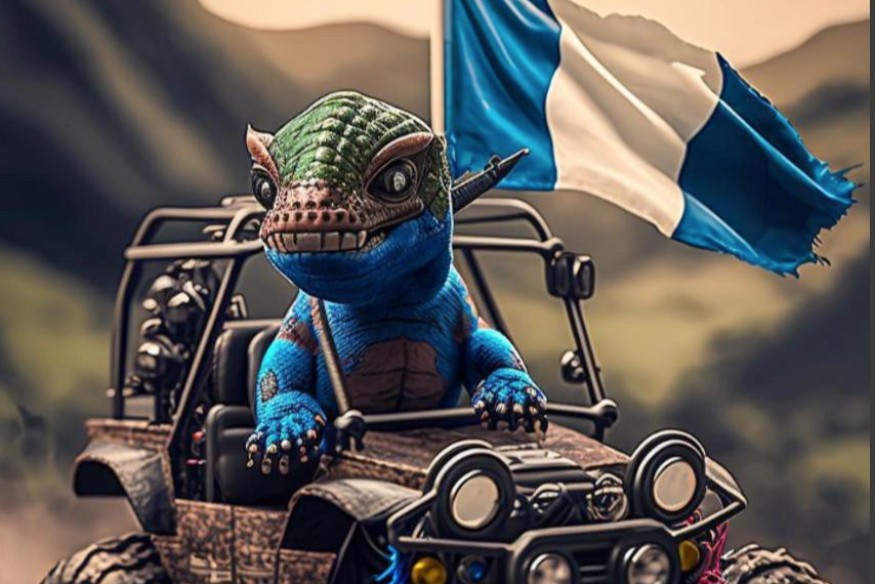 En estos podrás ver diferentes dinosaurios sobre cuatrimotos. Lo sorprendente del arte es que incluyen la bandera de Guatemala e incluso uno de los autos está pintado de azul y......