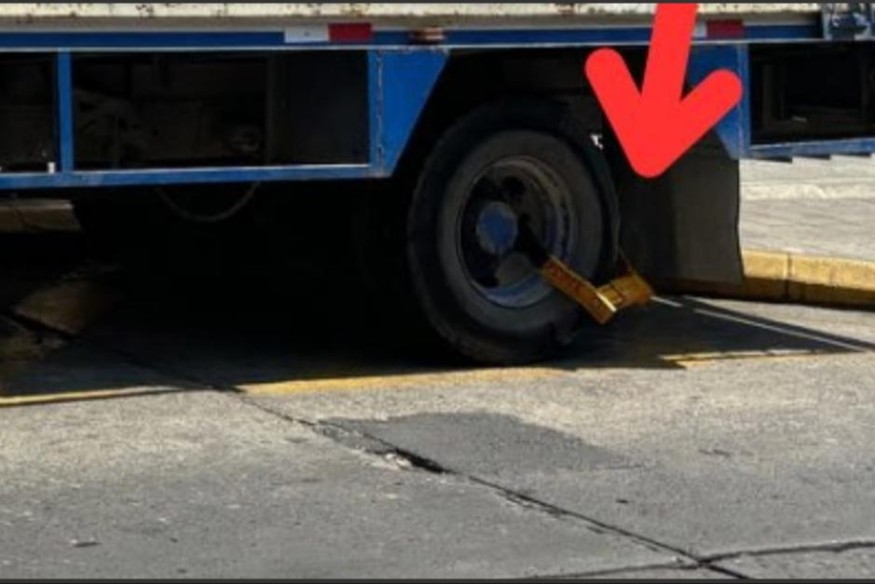 A través de redes sociales, la Policía Municipal de Tránsito difundió un video sobre el caso de un camión repartidor de agua que estando estacionado en área de carga y descarga le fue colocado un cepo.