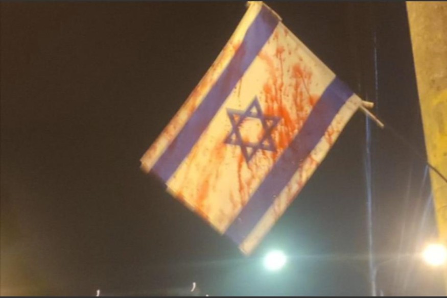 Sin embargo, otro grupo de activistas mostró su rechazo a las banderas israelíes en la ciudad y decidieron pintarlas de rojo, haciendo referencias a los 30 mil palestinos muertos en la Franja de Gaza.