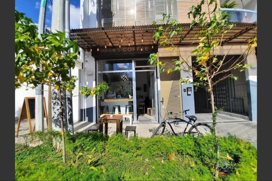"Mano's Coffee" es un lugar pequeño para visitar. Cuenta con bancos frente a la cafetería para relajarse. Está situado en una calle donde puedes admirar a las personas y carros que pasen y ver lo que hay alrededor.
