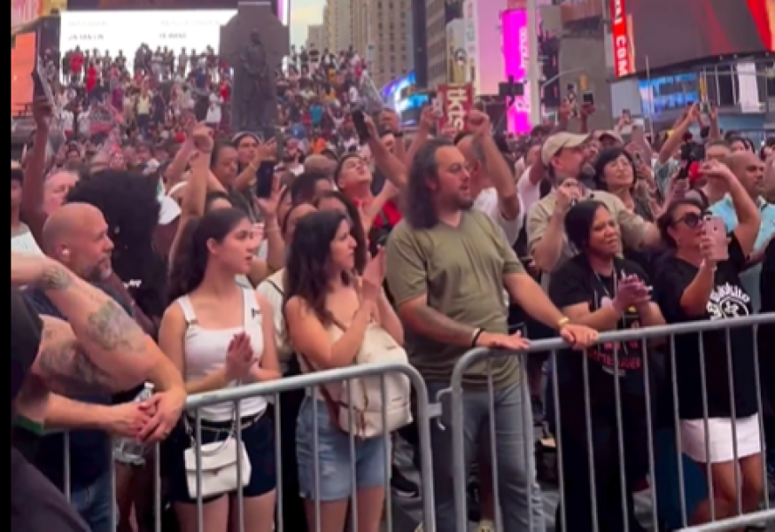 La multitud presente en Times Square se unió en danzas y proclamaciones entusiastas del nombre de Jesús, llenando el lugar con un ambiente de celebración y alabanza. Más tarde, se escucharon fuertes gritos de "¡libertad!".