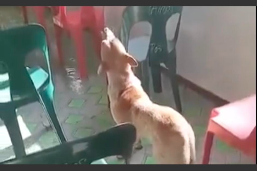 Las imágenes dan cuenta que mientras los miembros de la iglesia cantan, el canino que se encuentra entre las sillas, comienza a aullar.