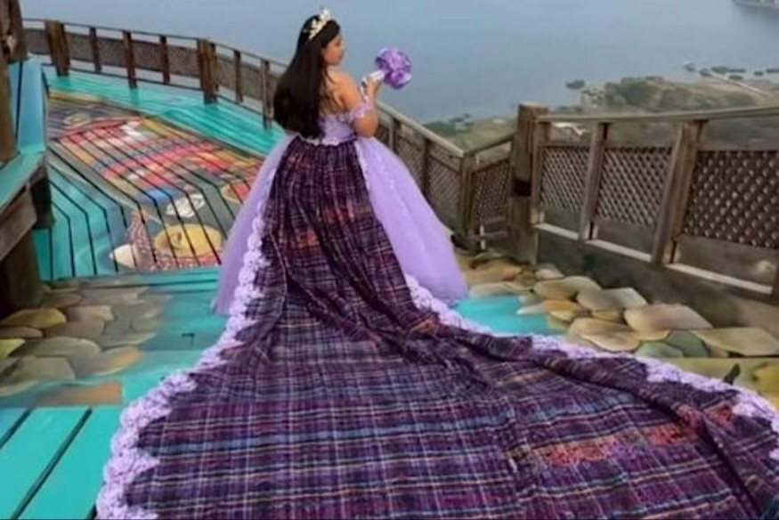 El usuario de TikTok Federico Roulet mostró la sesión que realizó a la cumpleañera, quien lució un vestido largo lila, cuya cola consistía en textil elaborado a mano.
