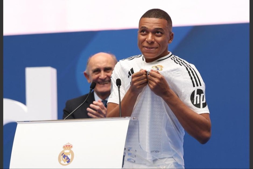 El Real Madrid presentó oficialmente este martes 16 de julio a Kylian Mbappé como nuevo jugador del club blanco, en el estadio Santiago Bernabéu.