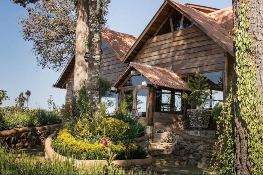 El restaurante Vista Bella es una cabaña de dos niveles con una vista espectacular, en donde podrás apreciar la agricultura como también las montañas y los árboles que lo rodean.