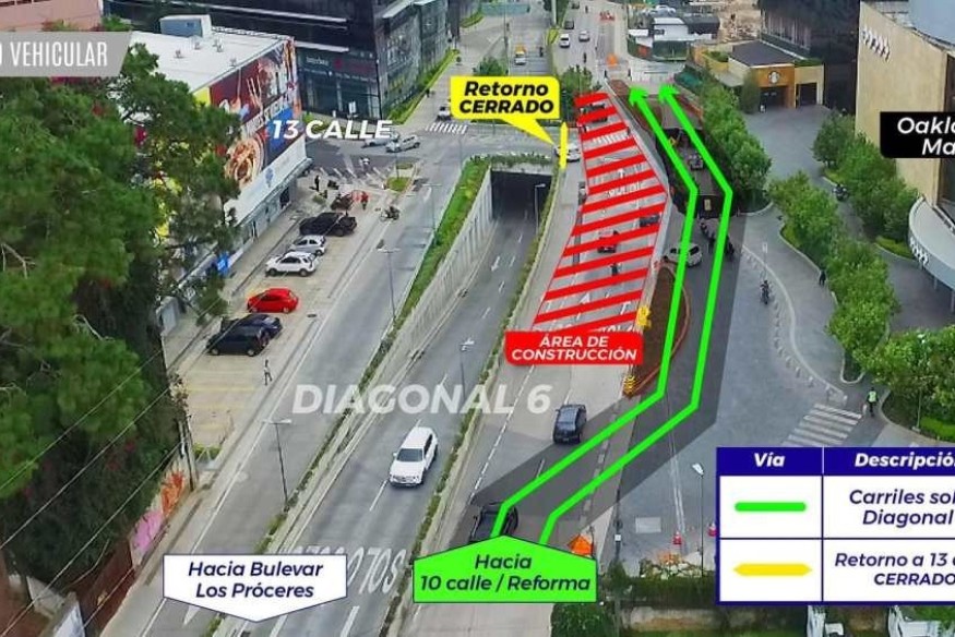 La Policía Municipal de Tránsito (PMT) ha anunciado importantes cambios en la circulación vial en la 13 calle y Diagonal 6 de la zona 10 de la capital a partir del miércoles 23 de agosto. Estos cambios se mantendrán durante los próximos tres meses debido a trabajos que se llevarán a cabo frente a un centro comercial en la zona.