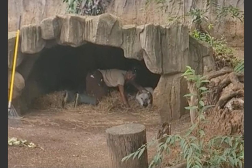 Además, destacaron que el lobo que se encontraba en su cueva estaba tranquilo con la presencia de su cuidadora.