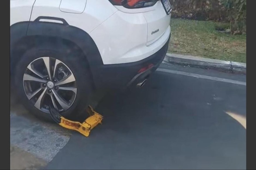 En las últimas horas ha circulado un video en el que una ciudadana denuncia que se bajó del carro rápidamente para ir por su nieto frente a un centro escolar, pero al volver notó que le colocaron cepo.
