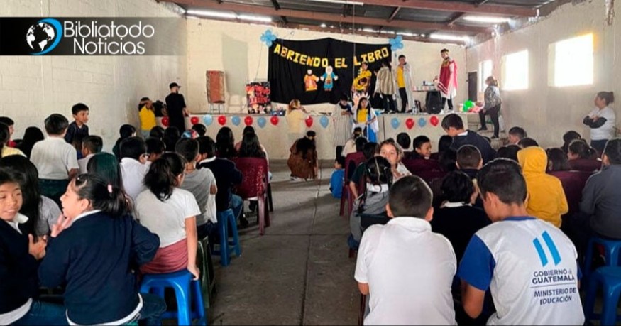 A través del programa «Abre el Libro» de la Sociedad Bíblica, se acerca el teatro de cuentos bíblicos a los estudiantes, quienes cantan y bailan mientras aprenden a leer y internalizan los principios morales de la Palabra de Dios.