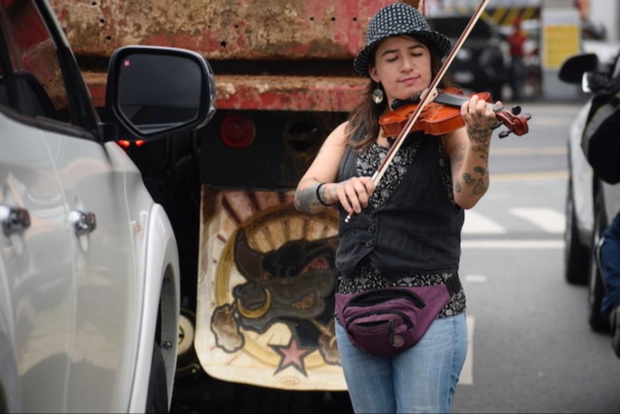 Acompañada de su violín, Yasmín Bocaletti se instala en diversos semáforos para ejecutar melodías, con el fin de sacar una sonrisa a conductores que esperan el cambio de luz roja a verde y continuar su trayecto.